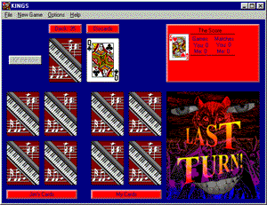 KINGS is a free 32-bit card game for Windows 95 or later. You against the computer. It plays a very good game but it doesn't cheat! The object of the game is to get a lower total of the numeric sum of your four cards than the computer's total of its cards. I wrote it because there's no other digital version and because I play it with real cards for fun or money occasionally and was curious to see if I could get the computer to play a good game. I also wrote it to learn Visual Basic and, later, Delphi when I rewrote it for the current 2.0 version. Freeware. Enter any 'company name' and 'serial number' when prompted for the serial number. |