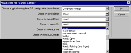 happens when you click a control. Check out scene 7 of the feature tour and see if it's up to your standards in cursor